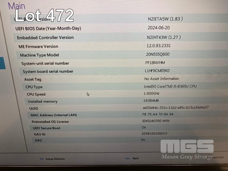 LAPTOP, LENOVO THINKPAD T590, TYPE 20N5, CORE i5 8365U (8TH GEN) @ 1.6GHz, 16GB DDR4 RAM, 256GB NVMe M.2 SSD, 15.6" TOUCHSCREEN (1920x1080), INTEL UHD GRAPHICS, Wi-Fi, BLUETOOTH, WINDOWS 11 HOME INSTALLED (NO USB-C POWER SUPPLY) S/N:PF1BNVHM