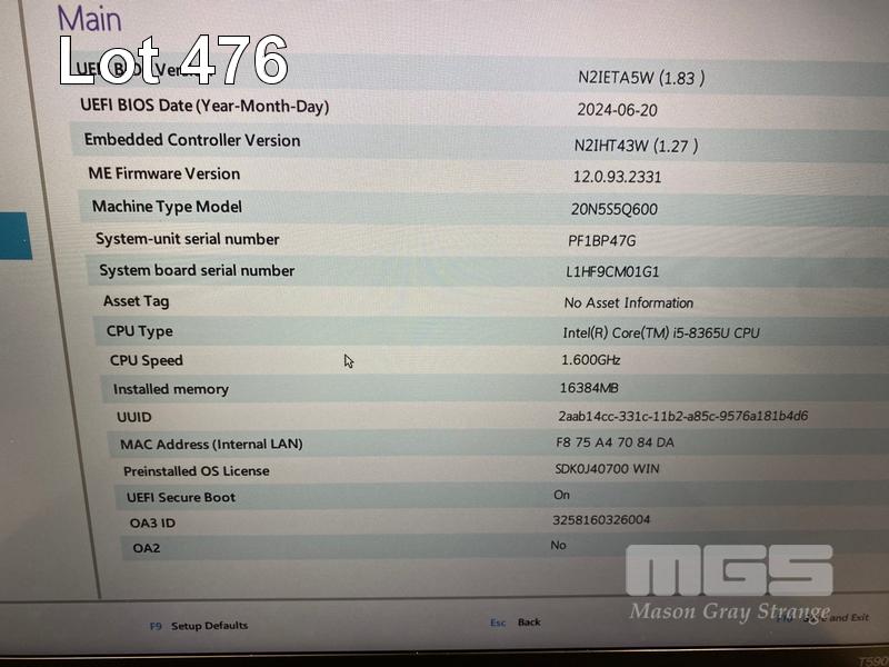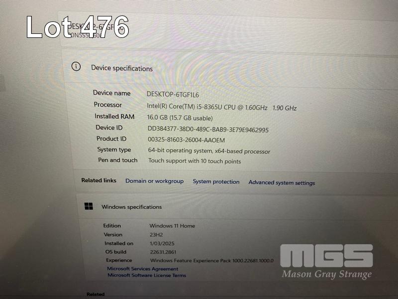 LAPTOP, LENOVO THINKPAD T590, TYPE 20N5, CORE i5 8365U (8TH GEN) @ 1.6GHz, 16GB DDR4 RAM, 256GB NVMe M.2 SSD, 15.6" TOUCHSCREEN (1920x1080), INTEL UHD GRAPHICS, Wi-Fi, BLUETOOTH, WINDOWS 11 HOME INSTALLED (NO USB-C POWER SUPPLY) (NOTE: MINOR MARKS ON SCREEN) S/N:PF1BP47G