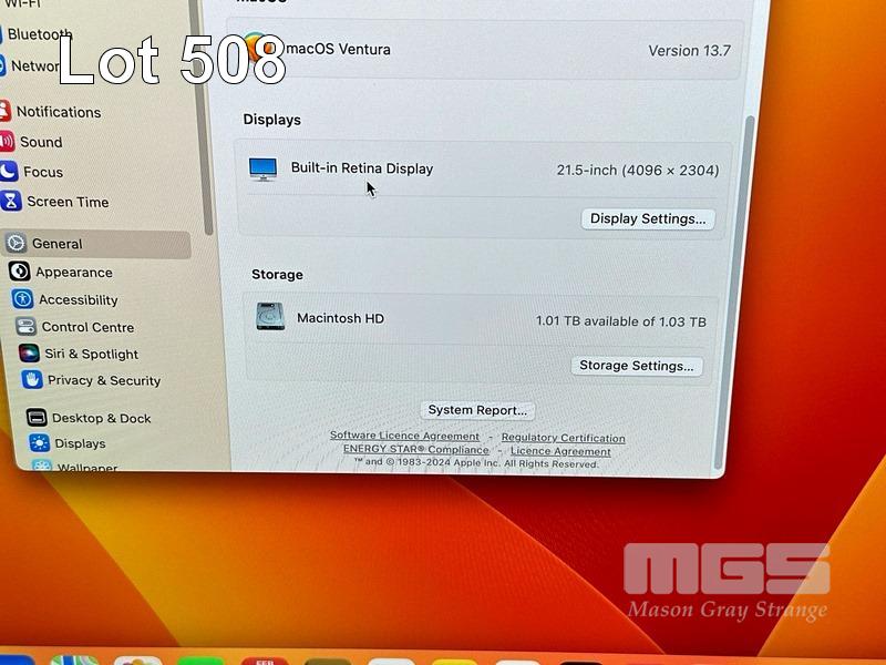 APPLE iMAC (A1418), CORE i5 7400 (7TH GEN) @ 3GHz, 16GB DDR4 RAM, 1TB FUSION DRIVE, BUILT-IN 21.5" RETINA DISPLAY (4096x2304), 2GB RADEON PRO 555 VIDEO, Wi-Fi, BLUETOOTH, MAC OS 13 INSTALLED, MACALLY KEYBOARD & MOUSE S/N:C02XJ07WJ1G9