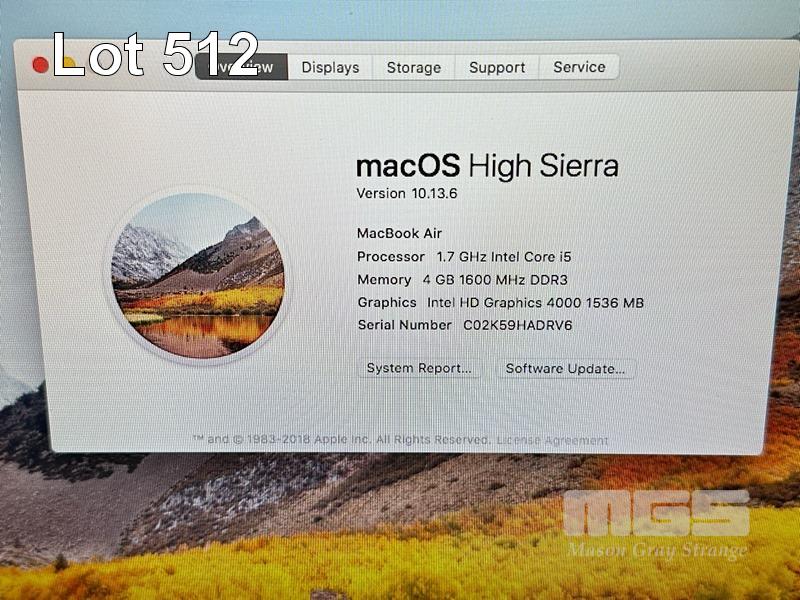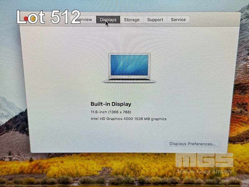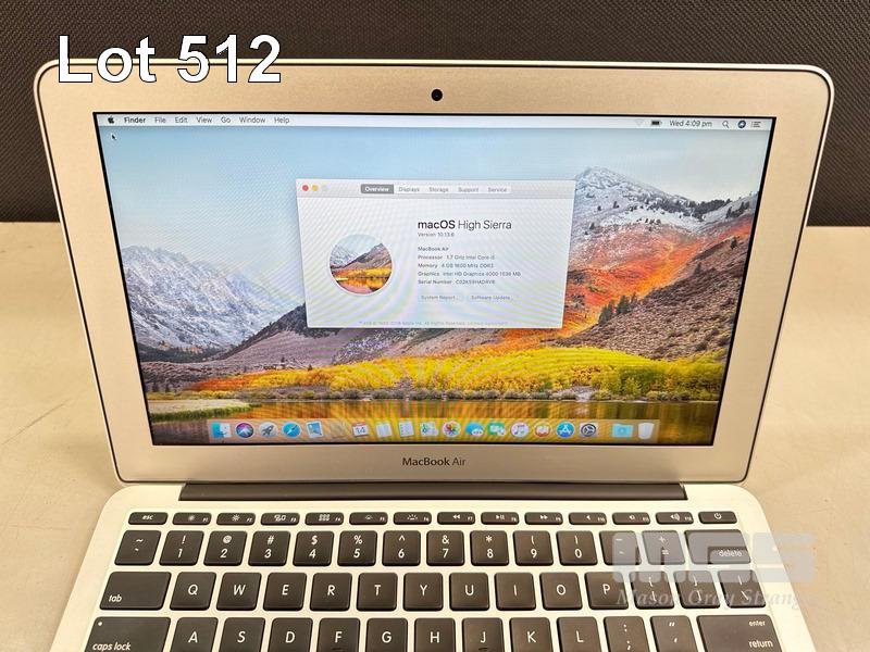 LAPTOP, APPLE MACBOOK AIR (A1465), CORE i5 3317U (3RD GEN) @ 1.7GHz, 4GB DDR3 RAM, 64GB SSD, 11.6" WIDESCREEN (1366x768), INTEL HD GRAPHICS 4000, Wi-Fi, BLUETOOTH, MAC OS 10.13 INSTALLED (NO POWER SUPPLY) S/N:C02K59HADRV6