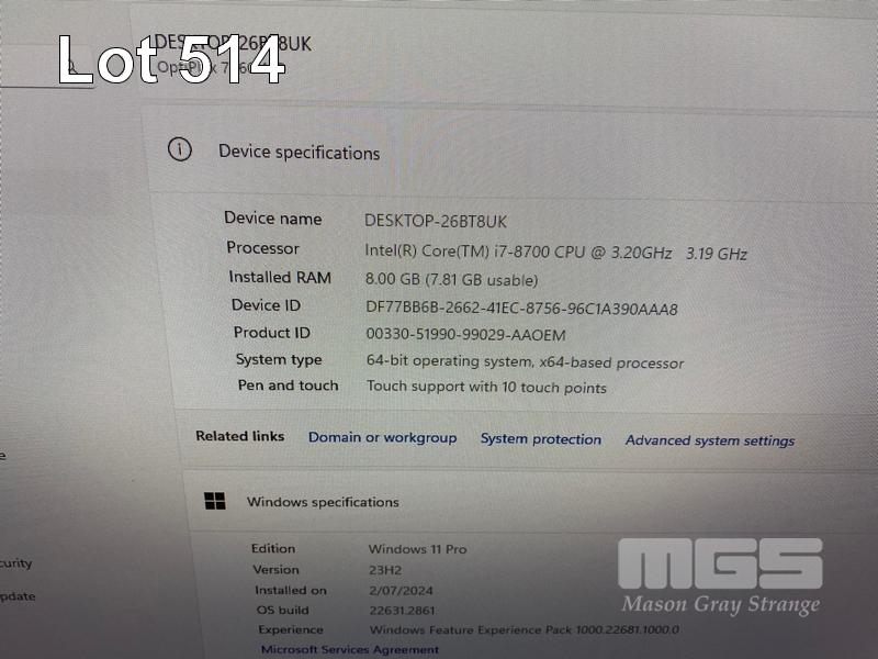 ALL-IN-ONE PC, DELL OPTIPLEX 7460, CORE i7 8700 (8TH GEN) @ 3.2GHz, 8GB DDR4 RAM, 512GB NVMe M.2 SSD, INBUILT 23.8" FHD TOUCHSCREEN (1920x1080), INTEL HD VIDEO, WEBCAM, 5 x USB, 1 x USB-C, WINDOWS 11 PRO INSTALLED, KEYBOARD & MOUSE S/N:89YW8X2