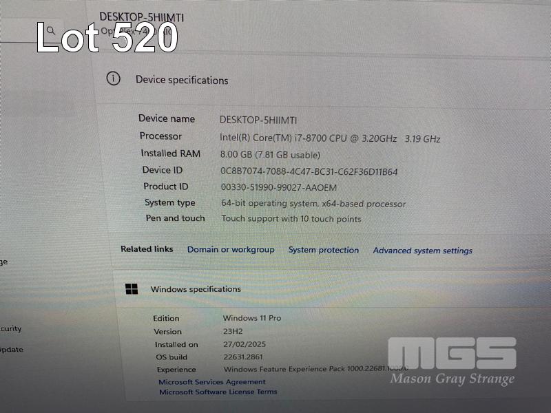 ALL-IN-ONE PC, DELL OPTIPLEX 7460, CORE i7 8700 (8TH GEN) @ 3.2GHz, 8GB DDR4 RAM, 512GB NVMe M.2 SSD, INBUILT 23.8" FHD TOUCHSCREEN (1920x1080), INTEL HD VIDEO, WEBCAM, 5 x USB, 1 x USB-C, WINDOWS 11 PRO INSTALLED, KEYBOARD & MOUSE S/N:89XZ8X2
