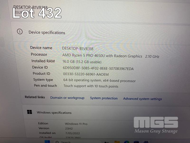 LAPTOP, LENOVO THINKPAD T14 Gen1, TYPE 20UE, AMD RYZEN 5 PRO 4650U @ 2.1GHz, 16GB DDR4 RAM, 512GB NVMe M.2 SSD, 14" TOUCHSCREEN (1920x1080), Wi-Fi, BLUETOOTH, WINDOWS 11 PRO INSTALLED & USB-C POWER SUPPLY (NOTE: MARKS ON SCREEN) S/N:PF240GN7