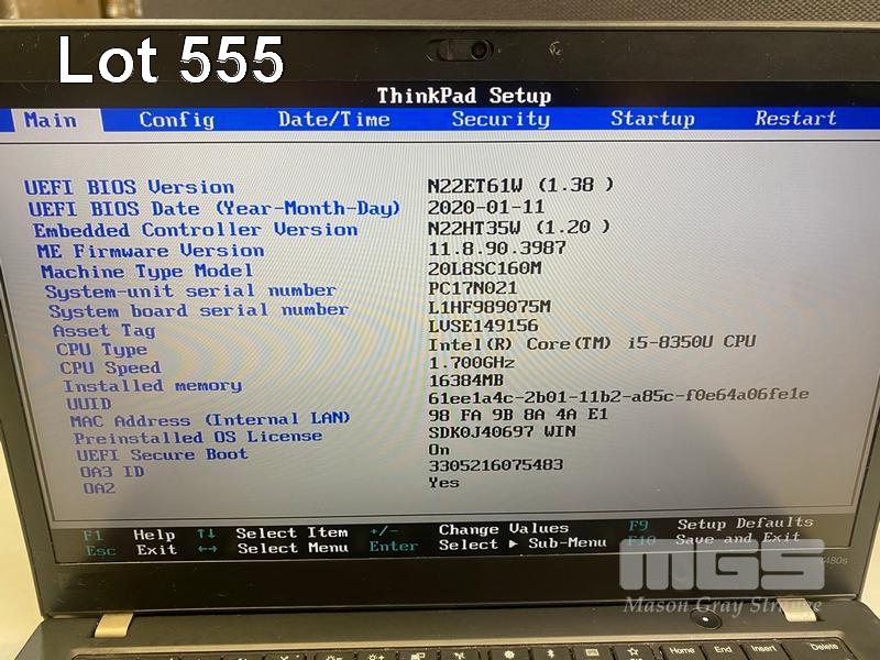 LAPTOP, LENOVO THINKPAD T480s, TYPE 20L8, CORE i5 8350U (8TH GEN) @ 1.7GHz, 16GB DDR4 RAM, 256GB NVMe M.2 SSD, 14" TOUCHSCREEN (1920x1080), INTEL HD VIDEO, Wi-Fi, BLUETOOTH, WINDOWS 11 PRO INSTALLED (NO USB-C POWER SUPPLY) (NOTE: MINOR MARKS ON SCREEN) S/N:PC17N021