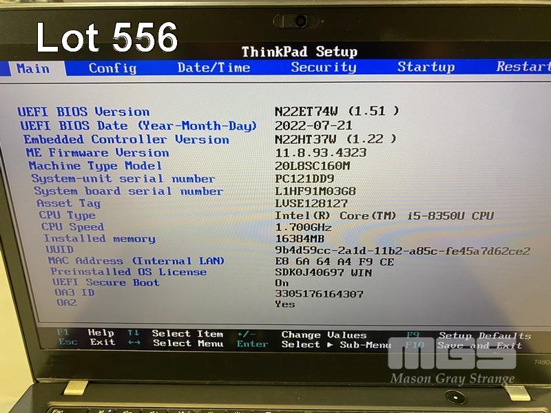 LAPTOP, LENOVO THINKPAD T480s, TYPE 20L8, CORE i5 8350U (8TH GEN) @ 1.7GHz, 16GB DDR4 RAM, 256GB NVMe M.2 SSD, 14" TOUCHSCREEN (1920x1080), INTEL HD VIDEO, Wi-Fi, BLUETOOTH, WINDOWS 11 PRO INSTALLED (NO USB-C POWER SUPPLY) (NOTE: MARKS ON SCREEN) S/N:PC121DD9