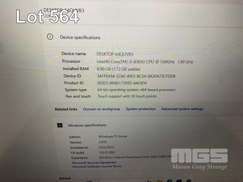 LAPTOP, LENOVO THINKPAD T590, TYPE 20N5, CORE i5 8365U (8TH GEN) @ 1.6GHz, 8GB DDR4 RAM, 128GB NVMe M.2 SSD, 15.6" TOUCHSCREEN (1920x1080), INTEL UHD GRAPHICS, Wi-Fi, BLUETOOTH, WINDOWS 11 HOME INSTALLED (NO USB-C POWER SUPPLY) (NOTE: MARKS & SPOT ON SCREEN) S/N:PF25NSXS