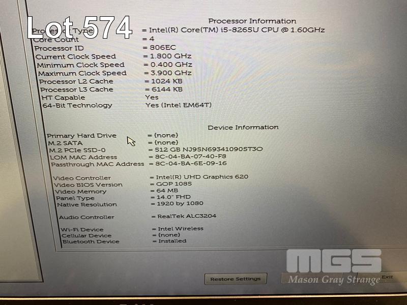 LAPTOP, DELL LATITUDE 5400, CORE i5 8265U (8TH GEN) @ 1.6GHz, 8GB DDR4 RAM, 512GB NVMe M.2 SSD, 14" WIDESCREEN (1920x1080), INTEL UHD GRAPHICS 620, Wi-Fi, BLUETOOTH, WINDOWS 11 HOME INSTALLED & POWER SUPPLY S/N:HFNN0X2