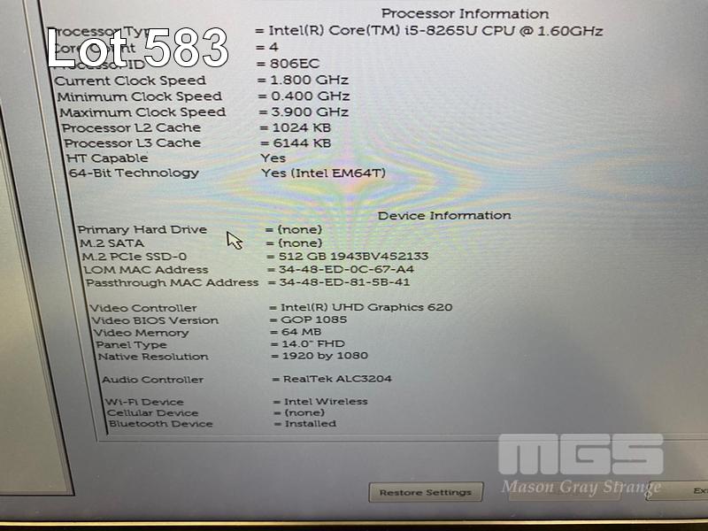 LAPTOP, DELL LATITUDE 5400, CORE i5 8265U (8TH GEN) @ 1.6GHz, 8GB DDR4 RAM, 512GB NVMe M.2 SSD, 14" WIDESCREEN (1920x1080), INTEL UHD GRAPHICS 620, Wi-Fi, BLUETOOTH, WINDOWS 11 HOME INSTALLED & POWER SUPPLY (NOTE: MARKS ON SCREEN) S/N:7X8P4Y2