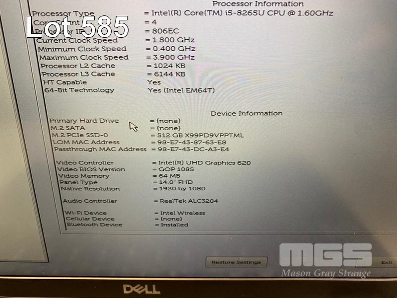 LAPTOP, DELL LATITUDE 5400, CORE i5 8265U (8TH GEN) @ 1.6GHz, 8GB DDR4 RAM, 512GB NVMe M.2 SSD, 14" WIDESCREEN (1920x1080), INTEL UHD GRAPHICS 620, Wi-Fi, BLUETOOTH, WINDOWS 11 HOME INSTALLED & POWER SUPPLY (NOTE: MINOR MARKS & SPOTS ON SCREEN) S/N:GDH6ZY2
