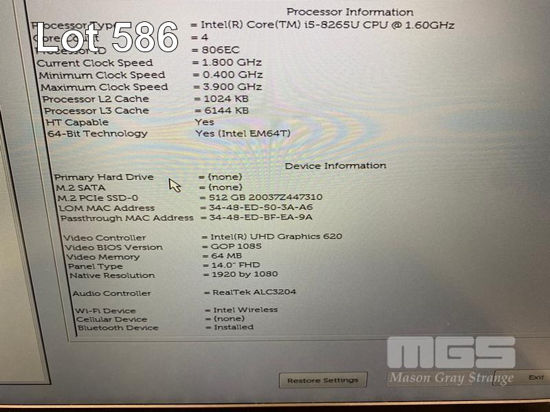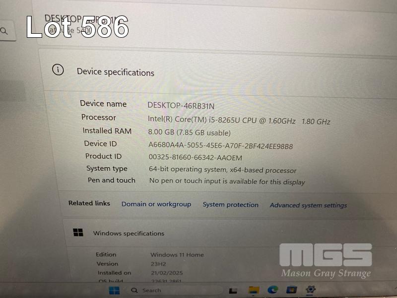LAPTOP, DELL LATITUDE 5400, CORE i5 8265U (8TH GEN) @ 1.6GHz, 8GB DDR4 RAM, 512GB NVMe M.2 SSD, 14" WIDESCREEN (1920x1080), INTEL UHD GRAPHICS 620, Wi-Fi, BLUETOOTH, WINDOWS 11 HOME INSTALLED & POWER SUPPLY (NOTE: MINOR MARKS & SPOTS ON SCREEN) S/N:951HN13
