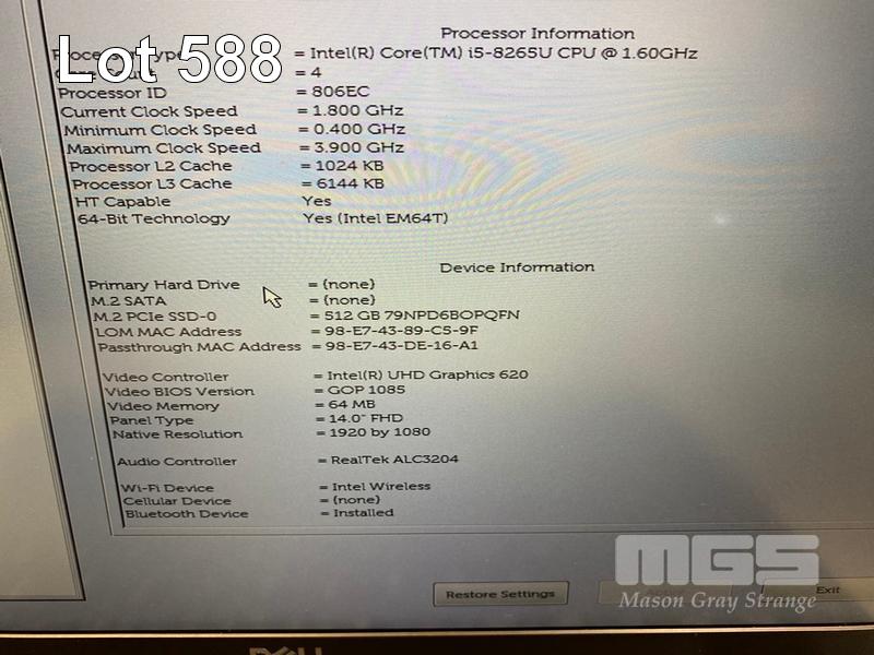 LAPTOP, DELL LATITUDE 5400, CORE i5 8265U (8TH GEN) @ 1.6GHz, 4GB DDR4 RAM, 512GB NVMe M.2 SSD, 14" WIDESCREEN (1920x1080), INTEL UHD GRAPHICS 620, Wi-Fi, BLUETOOTH, WINDOWS 11 HOME INSTALLED & POWER SUPPLY (NOTE: MARKS & SPOT ON SCREEN) S/N:62K6ZY2