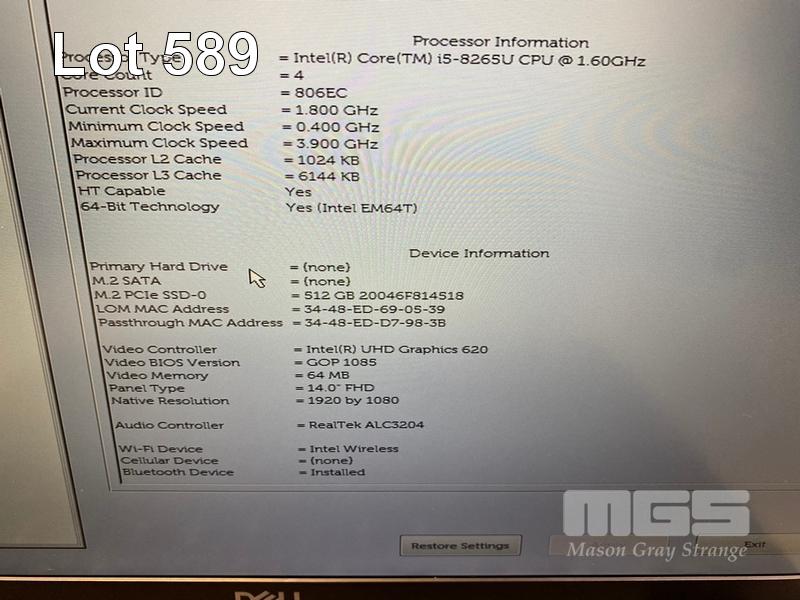 LAPTOP, DELL LATITUDE 5400, CORE i5 8265U (8TH GEN) @ 1.6GHz, 8GB DDR4 RAM, 512GB NVMe M.2 SSD, 14" WIDESCREEN (1920x1080), INTEL UHD GRAPHICS 620, Wi-Fi, BLUETOOTH, WINDOWS 11 HOME INSTALLED & POWER SUPPLY (NOTE: KEYBOARD FAULT - KEYS HARD TO PRESS) S/N:J8WW533