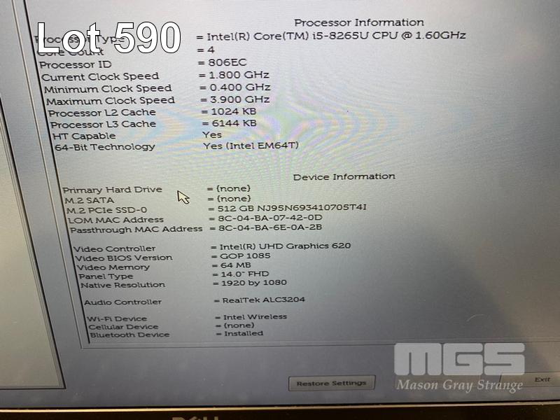 LAPTOP, DELL LATITUDE 5400, CORE i5 8265U (8TH GEN) @ 1.6GHz, 8GB DDR4 RAM, 512GB NVMe M.2 SSD, 14" WIDESCREEN (1920x1080), INTEL UHD GRAPHICS 620, Wi-Fi, BLUETOOTH, WINDOWS 11 HOME INSTALLED (NO POWER SUPPLY) (NOTE: SWOLLEN BATTERY, MARKS ON SCREEN) S/N:3CB51X2