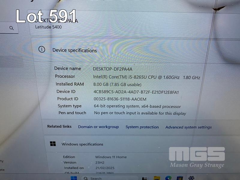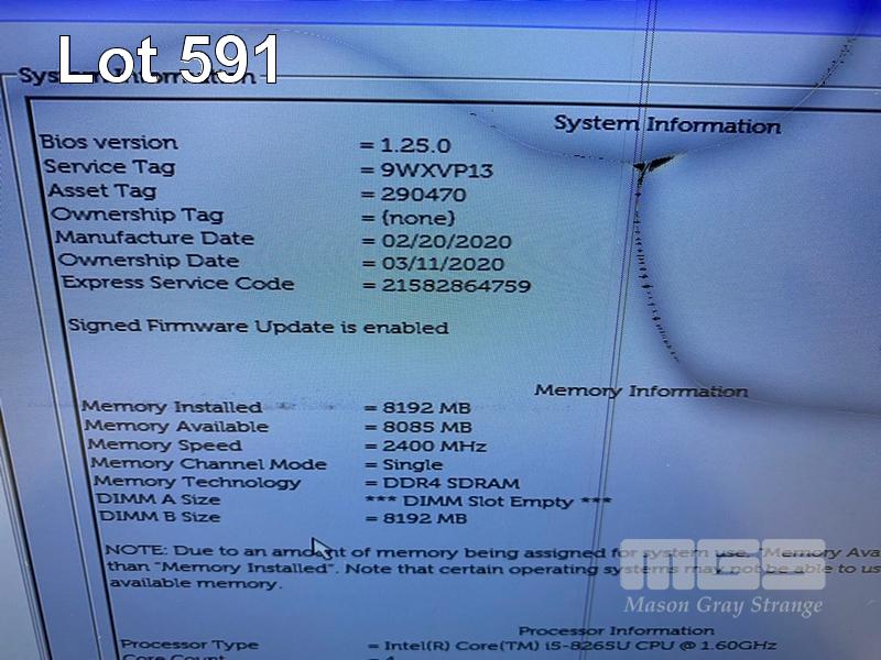 LAPTOP, DELL LATITUDE 5400, CORE i5 8265U (8TH GEN) @ 1.6GHz, 8GB DDR4 RAM, 512GB NVMe M.2 SSD, 14" WIDESCREEN (1920x1080), INTEL UHD GRAPHICS 620, Wi-Fi, BLUETOOTH, WINDOWS 11 HOME INSTALLED (NO POWER SUPPLY) (NOTE: DAMAGED SCREEN, MARKS ON SCREEN) S/N:9WXVP13