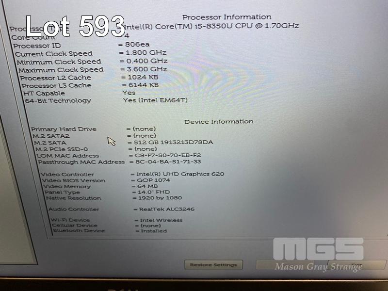 LAPTOP, DELL LATITUDE 5490, CORE i5 8350U (8TH GEN) @ 1.7GHz, 8GB DDR4 RAM, 512GB M.2 SSD, 14" WIDESCREEN (1920x1080), INTEL UHD GRAPHICS 620, Wi-Fi, BLUETOOTH, WINDOWS 11 HOME INSTALLED & POWER SUPPLY S/N:6WYJQV2