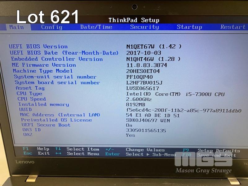 LAPTOP, LENOVO THINKPAD T470, TYPE 20HE, CORE i5 7300U (7TH GEN) @ 2.6GHz, 8GB DDR4 RAM, 256GB NVMe M.2 SSD, 14" WIDESCREEN (1366x768), INTEL HD VIDEO, Wi-Fi, BLUETOOTH, WINDOWS 10 PRO INSTALLED & POWER SUPPLY (NOTE: MINOR MARKS ON SCREEN) S/N:PF10QP40