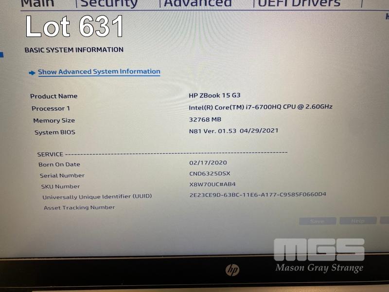LAPTOP, HP ZBOOK 15 G3 MOBILE WORKSTATION, CORE i7 6700HQ (6TH GEN) @ 2.6GHz, 32GB DDR4 RAM, 256GB SSD, 2TB SATA HDD, 15.6" WIDESCREEN (1920x1080), 4GB NVIDIA QUADRO M2000M VIDEO, Wi-Fi, BLUETOOTH, WINDOWS 10 PRO INSTALLED (NO POWER SUPPLY) (NOTE: FAULTY HARD DRIVE, RUBBER LOOSE UNDERNEATH) S/N:CND6325DSX