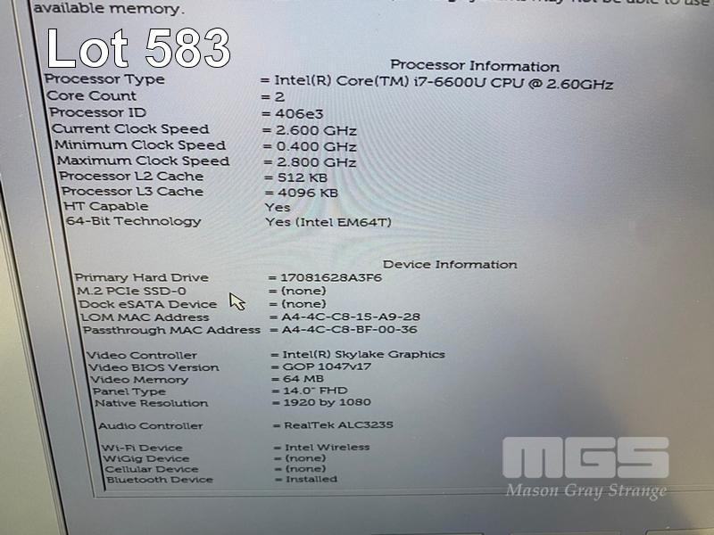 LAPTOP, DELL LATITUDE E7470, CORE i7 6600U (6TH GEN) @ 2.6GHz, 16GB DDR4 RAM, 512GB M.2 SSD, 14" WIDESCREEN (1920x1080), INTEL HD GRAPHICS 520, Wi-Fi, BLUETOOTH, WINDOWS 10 HOME INSTALLED, DOCKING STATION & POWER SUPPLY (NOTE: BATTERY NOT HOLDING CHARGE, MINOR MARKS ON SCREEN, "A" & "N" KEYS LOOSE) S/N:F5Q03G2