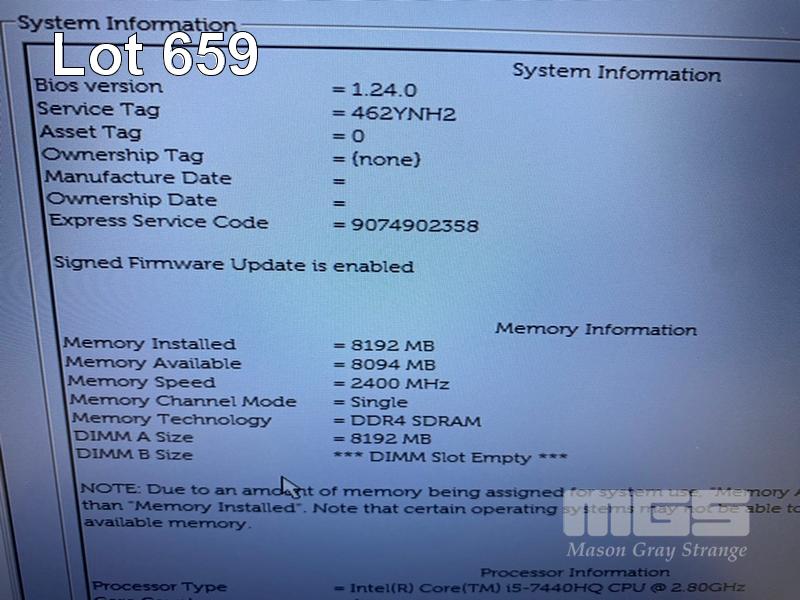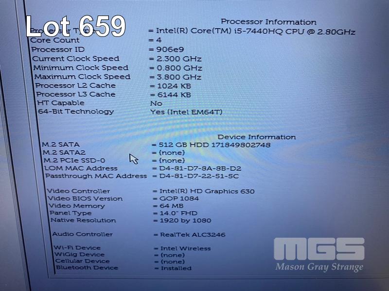 LAPTOP, DELL LATITUDE 5480, CORE i5 7440HQ (7TH GEN) @ 2.8GHz, 8GB DDR4 RAM, 512GB M.2 SSD, 14" WIDESCREEN (1920x1080), INTEL HD GRAPHICS 630, Wi-Fi, BLUETOOTH, WINDOWS 10 HOME INSTALLED & POWER SUPPLY (NOTE: MESSAGE "REPLACE BATTERY") S/N:462YNH2