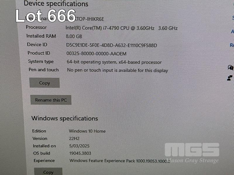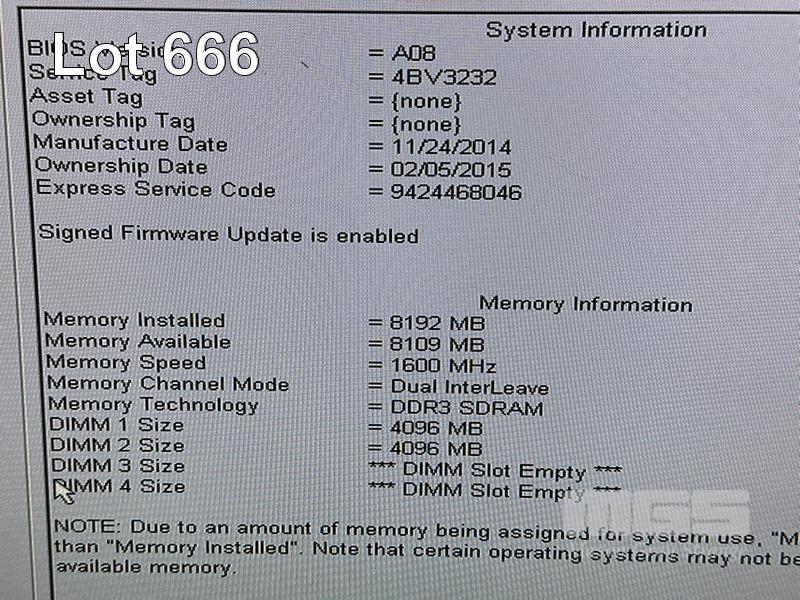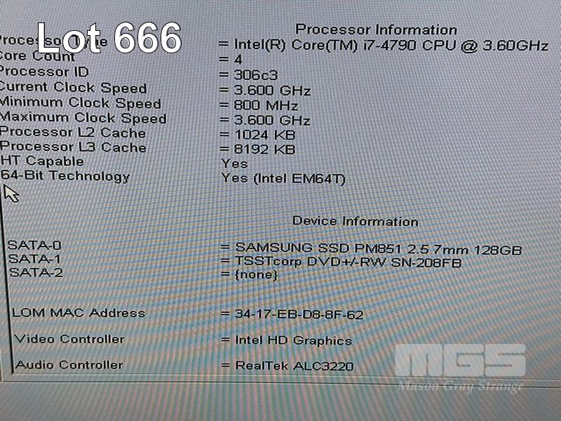 DESKTOP PC, DELL OPTIPLEX 9020 SFF, CORE i7 4790 (4TH GEN) @ 3.6GHz, 8GB DDR3 RAM, 128GB SSD, DVD-RW, WINDOWS 10 HOME INSTALLED, KEYBOARD & MOUSE WITH DELL E1911 19" LCD MONITOR (NOTE: COMPUTER CASE PADLOCKED) S/N:4BV3232