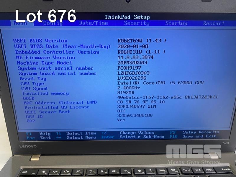 LAPTOP, LENOVO THINKPAD T460, TYPE 20FM, CORE i5 6300U (6TH GEN) @ 2.4GHz, 8GB DDR3 RAM, 525GB SSD, 14" WIDESCREEN (1366x768), INTEL HD VIDEO, Wi-Fi, BLUETOOTH, WINDOWS 10 PRO INSTALLED & POWER SUPPLY S/N:PC0H9197