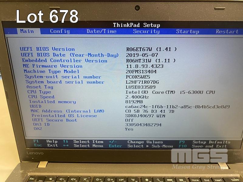 LAPTOP, LENOVO THINKPAD T460, TYPE 20FM, CORE i5 6300U (6TH GEN) @ 2.4GHz, 8GB DDR3 RAM, 256GB SSD, 14" WIDESCREEN (1366x768), INTEL HD VIDEO, Wi-Fi, BLUETOOTH, WINDOWS 10 PRO INSTALLED & POWER SUPPLY (NOTE: MARKS & SPOTS ON SCREEN) S/N:PC0K5WE5