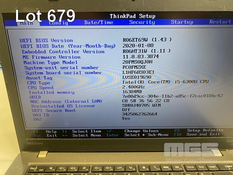 LAPTOP, LENOVO THINKPAD T460, TYPE 20FM, CORE i5 6300U (6TH GEN) @ 2.4GHz, 16GB DDR3 RAM, 256GB SSD, 14" WIDESCREEN (1920x1080), INTEL HD VIDEO, Wi-Fi, BLUETOOTH, WINDOWS 10 PRO INSTALLED & POWER SUPPLY (NOTE: POOR CONDITION, MARKS & SPOTS ON SCREEN) S/N:PC0FMZXE