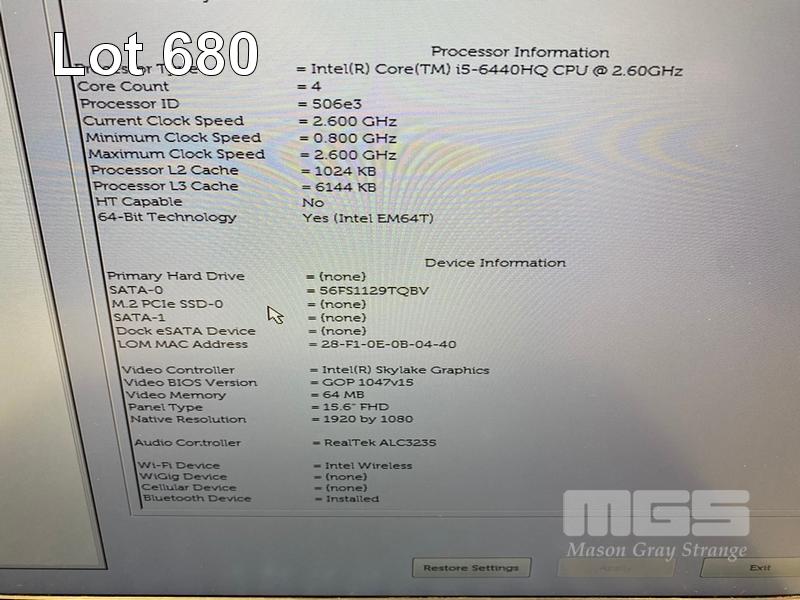 LAPTOP, DELL LATITUDE E5570, CORE i5 6440HQ (6TH GEN) @ 2.6GHz, 8GB DDR3 RAM, 256GB M.2 SSD, 15.6" WIDESCREEN (1920x1080), INTEL HD GRAPHICS 530, Wi-Fi, BLUETOOTH, WINDOWS 10 HOME INSTALLED, DOCKING STATION & POWER SUPPLY (NOTE: MARKS ON SCREEN) S/N:40JRGC2