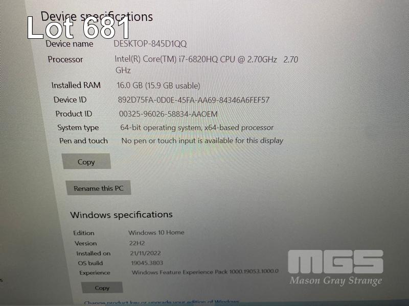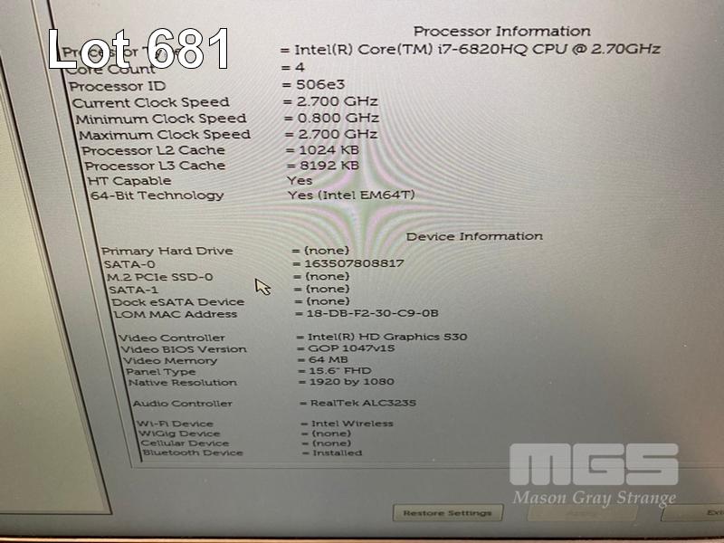 LAPTOP, DELL LATITUDE E5570, CORE i7 6820HQ (6TH GEN) @ 2.7GHz, 16GB DDR3 RAM, 256GB M.2 SSD, 15.6" WIDESCREEN (1920x1080), INTEL SKYLAKE GRAPHICS, Wi-Fi, BLUETOOTH, WINDOWS 10 HOME INSTALLED, DOCKING STATION & POWER SUPPLY (NOTE: BATTERY NOT HOLDING CHARGE, MINOR MARKS ON SCREEN) S/N:9ZB9CG2
