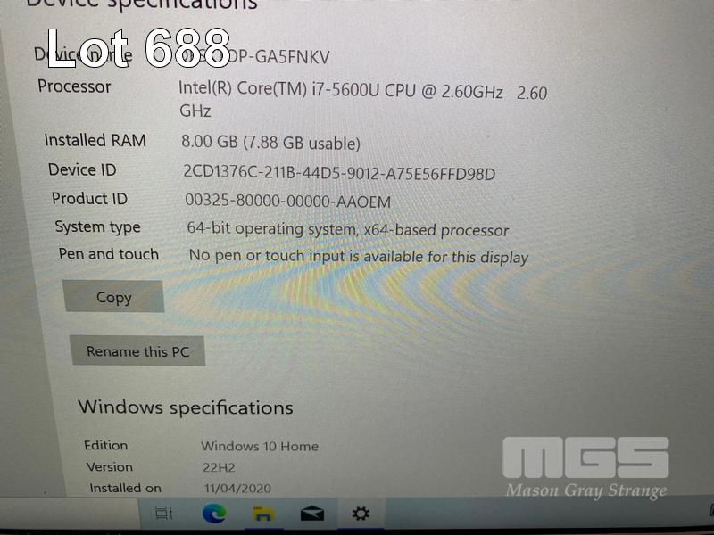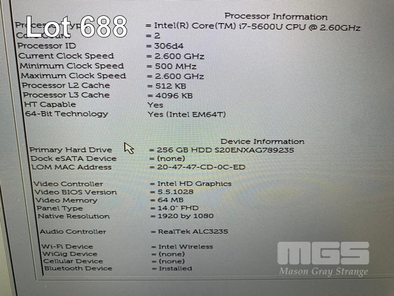 LAPTOP, DELL LATITUDE E7450, CORE i7 5600U (5TH GEN) @ 2.6GHz, 8GB DDR3 RAM, 256GB SSD, 14" WIDESCREEN (1920x1080), INTEL HD VIDEO, Wi-Fi, BLUETOOTH, WINDOWS 10 HOME INSTALLED & POWER SUPPLY S/N:BW0MZ52