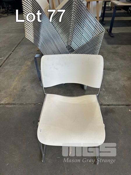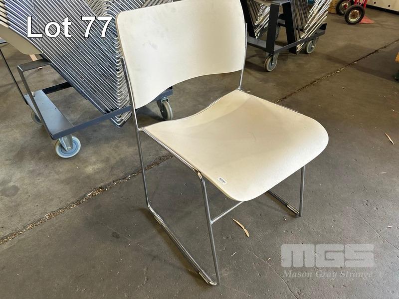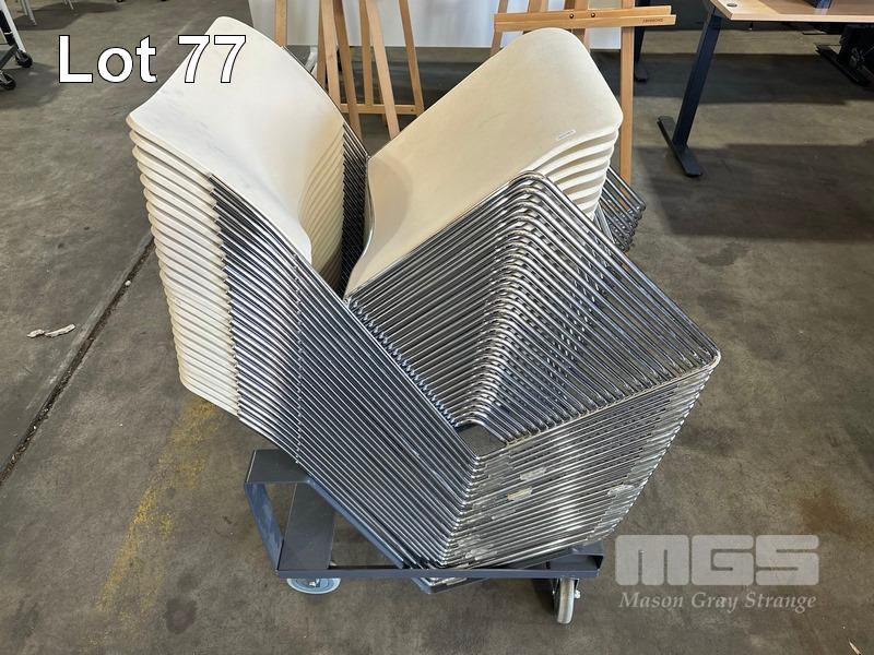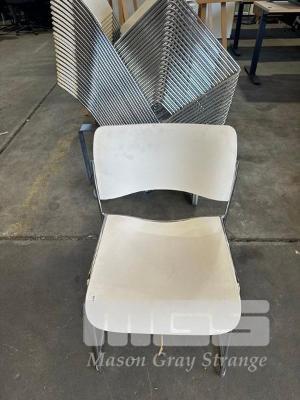 25 x STACKING CHAIRS, HOWE 40/4 SIDE CHAIR DESIGNED BY DAVID ROWLAND, WHITE, ON TROLLEY
