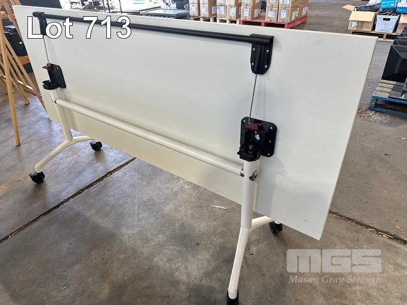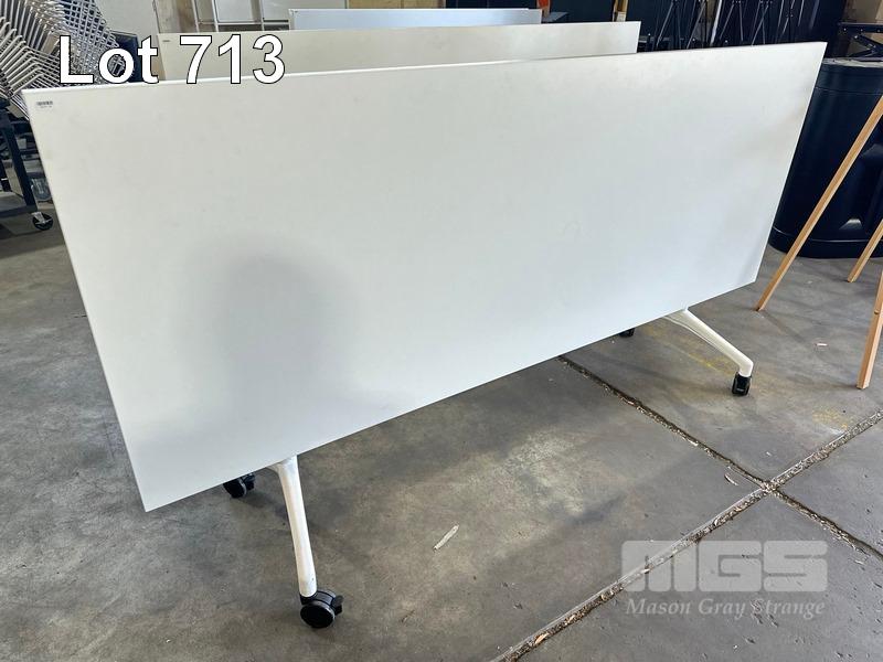 FLIP-TOP MOBILE TABLE, WHITE LAMINATE TOP, 210 x 80cm
