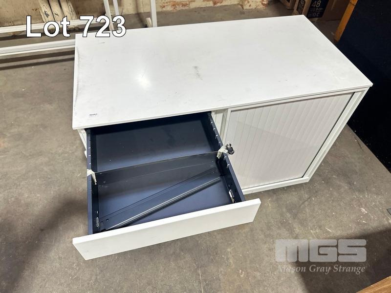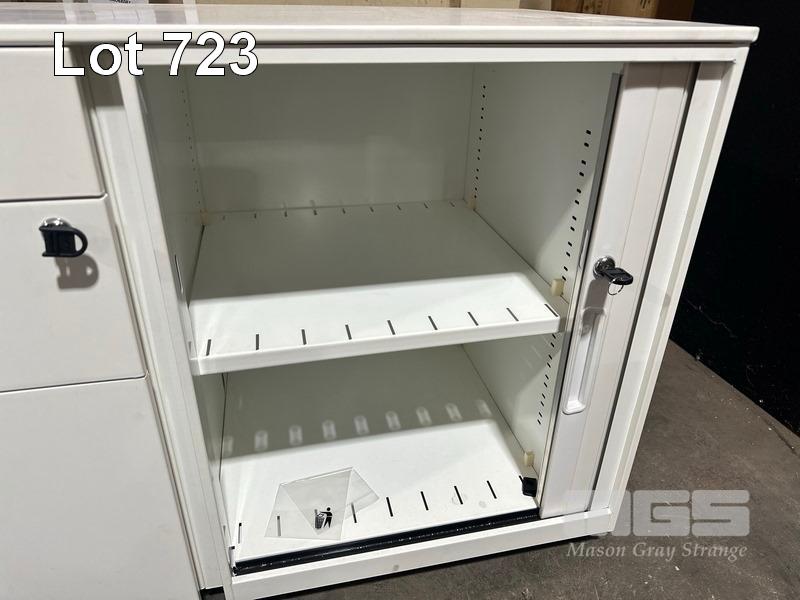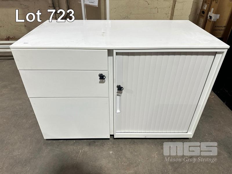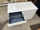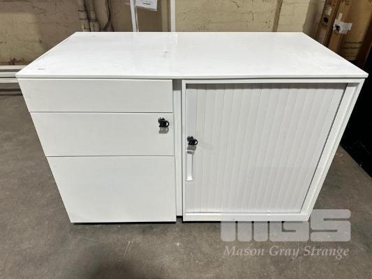MOBILE UNDERDESK CABINET, 3-DRAWER WITH SIDE TAMBOUR DOOR, WHITE STEEL, LOCKABLE WITH KEYS