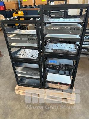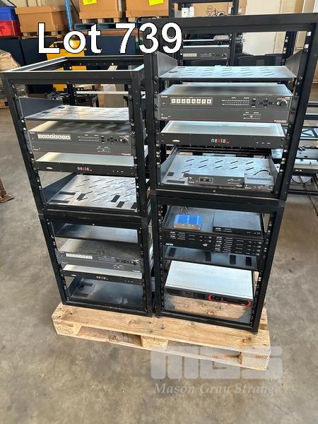 3 x DATA RACK FRAMES, 12RU 1 x DATA RACK FRAME, 15RU WITH CONTENTS INC. EXTRON, NEXIA, BIAMP TESIRA FORTE & AMX EQUIPMENT