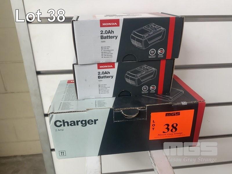 2 x HONDA BATTERIES, DP3620XAE, (2.0AH) & CHARGER, CV3620XA