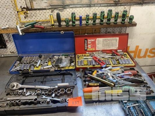 REPCO SHADOW BOARD & CONTENTS ASSORTED SOCKETS, SCREWDRIVERS, HAND TOOLS, ETC