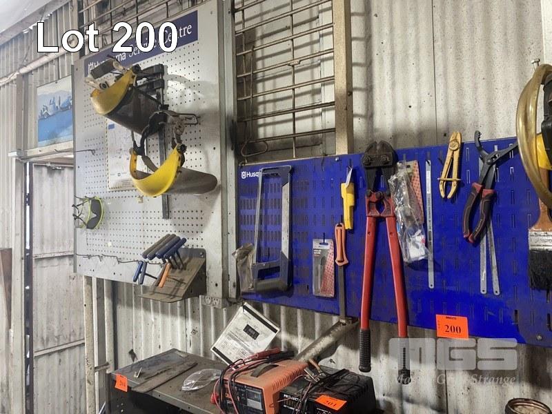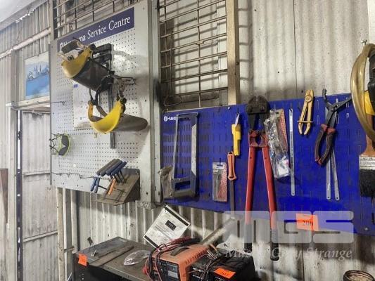 SHADOW BOARD & CONTENTS INCLUDING BOLT CUTTERS, HEX KEY SET, ETC