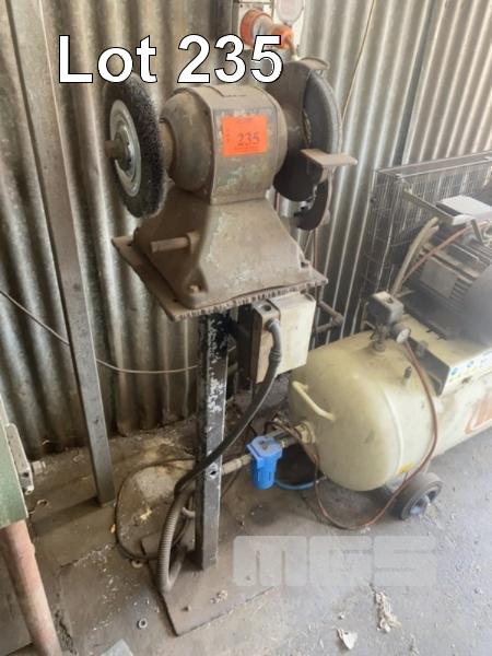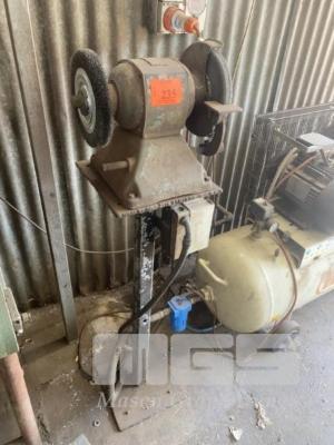 BELT GRINDER ON FABRICATED STEEL PEDESTAL