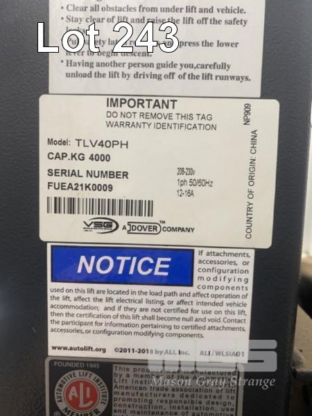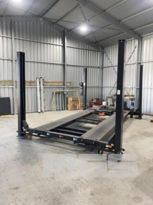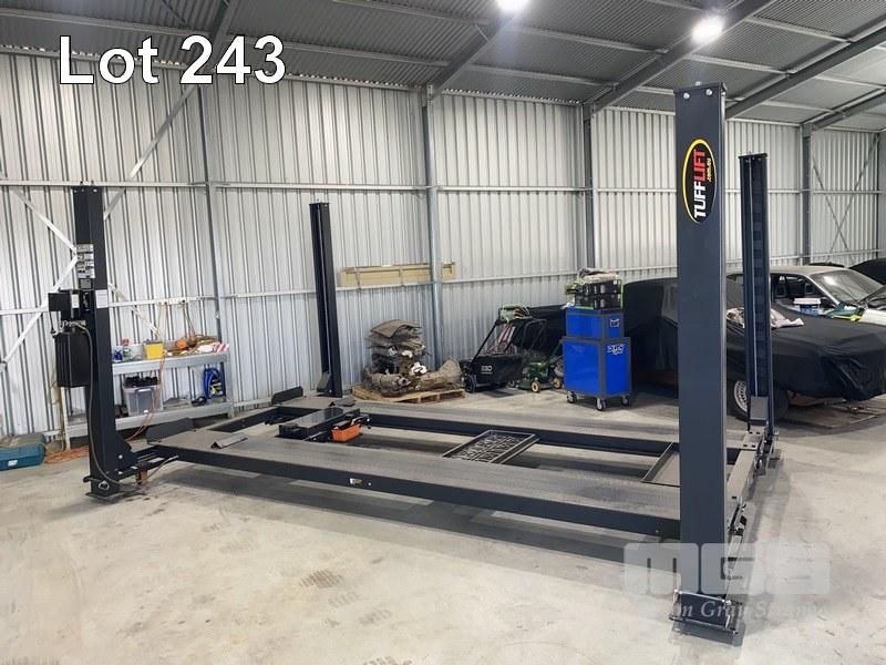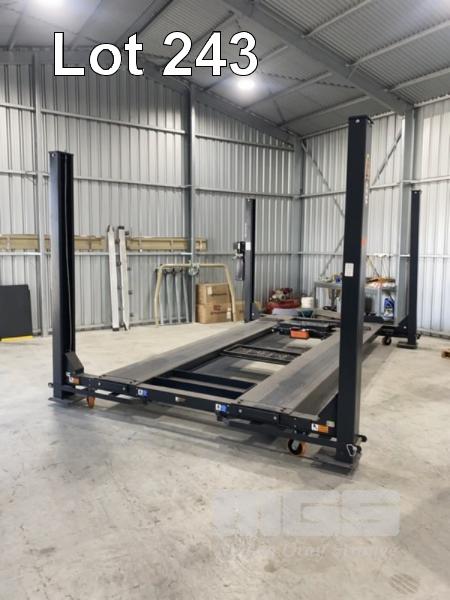 4 POST HOIST, TUFF LIFT MOD: TLV4OPH 4,000kg CAPACITY DOM: 2021 S/NO: FVEA 240V, 15 AMP 4 HD CASTOR WHEELS TO MOVE ASSEMBLED