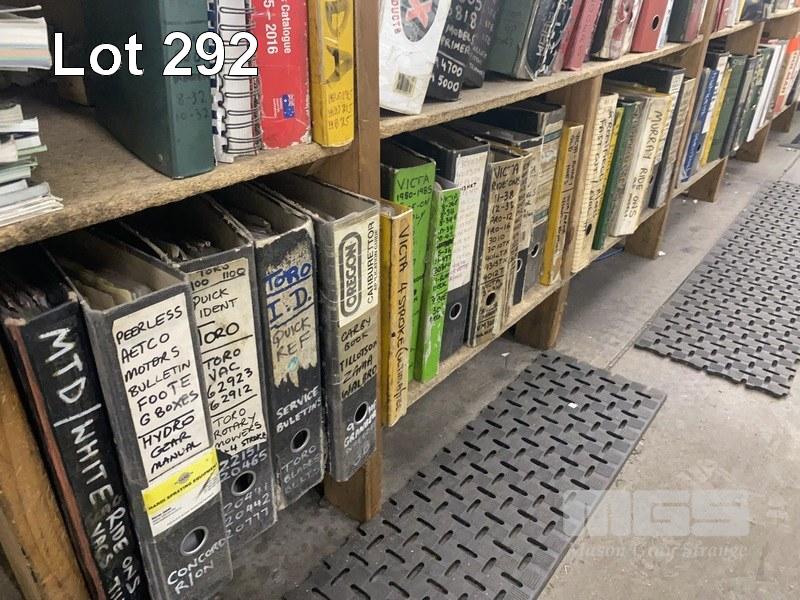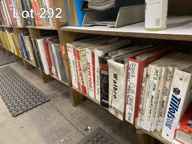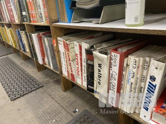 80 (APPROX) x WORKSHOP MANUALS, PEERLESS, TORO, OREGON, VICTA, GREENFIELD, MURRAY, KUBOTA, JET FAST, KAWASAKI, ECHO, KOHLER, DOLMAR, MTD, TILLOTSON, ETC 1 x SHELF