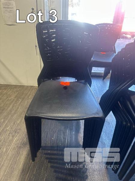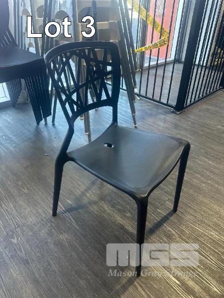 8 x CAFE CHAIRS, BLACK PLASTIC, STACKABLE