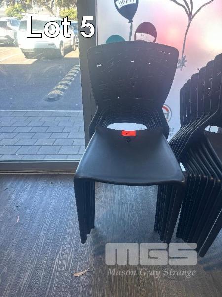 8 x CAFE CHAIRS, BLACK PLASTIC, STACKABLE