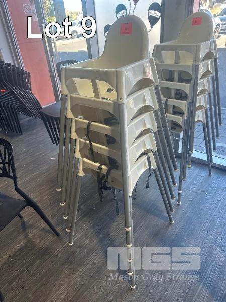 5 x HIGH CHAIRS, PLASTIC, STACKABLE