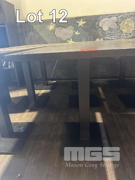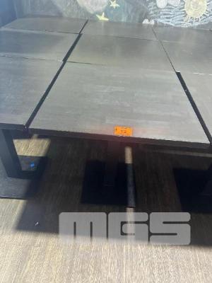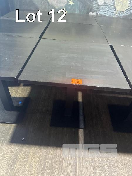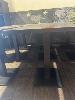 3 x SOLID TIMBER TOP CAFE TABLES, BLACK STEEL PEDESTAL BASE, 700 x 700mm