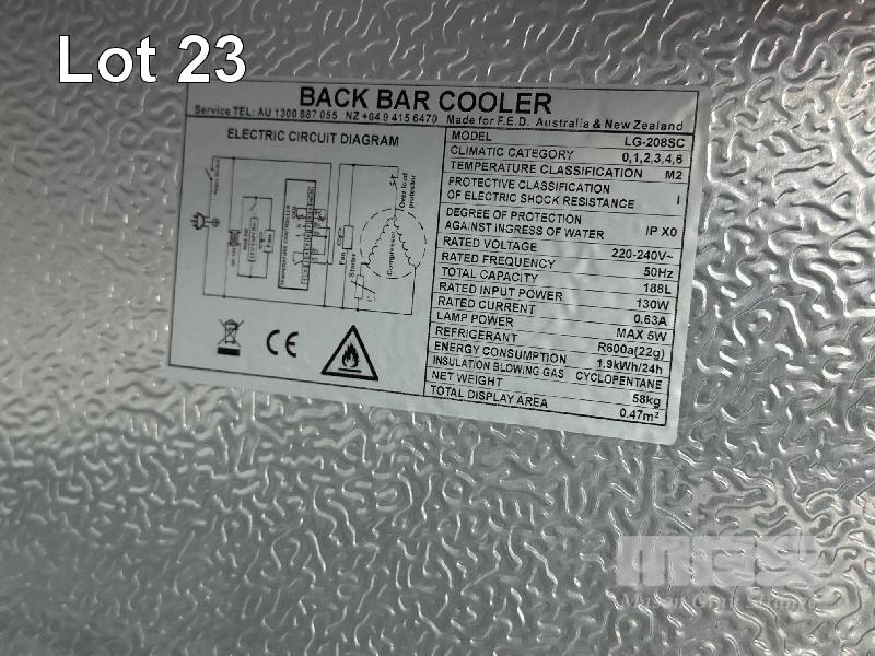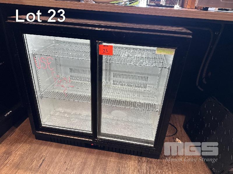 UNDERBENCH DISPLAY FRIDGE, THERMASTER MOD: LG-208SC 188 LITRE CAPACITY SLIDING DOORS, ILLUMINATED, 3 TIER SHELVING 900 x 500 x 840mm 240V, 10 AMP