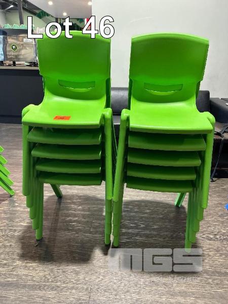 10 x GREEN CLASSROOM CHAIRS, PLASTIC, STACKABLE