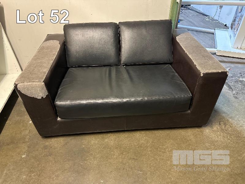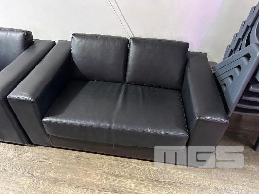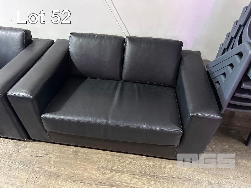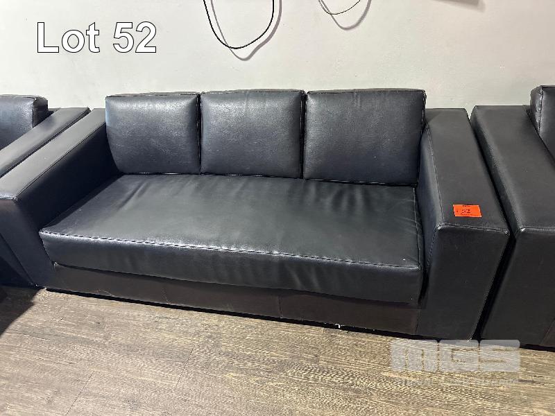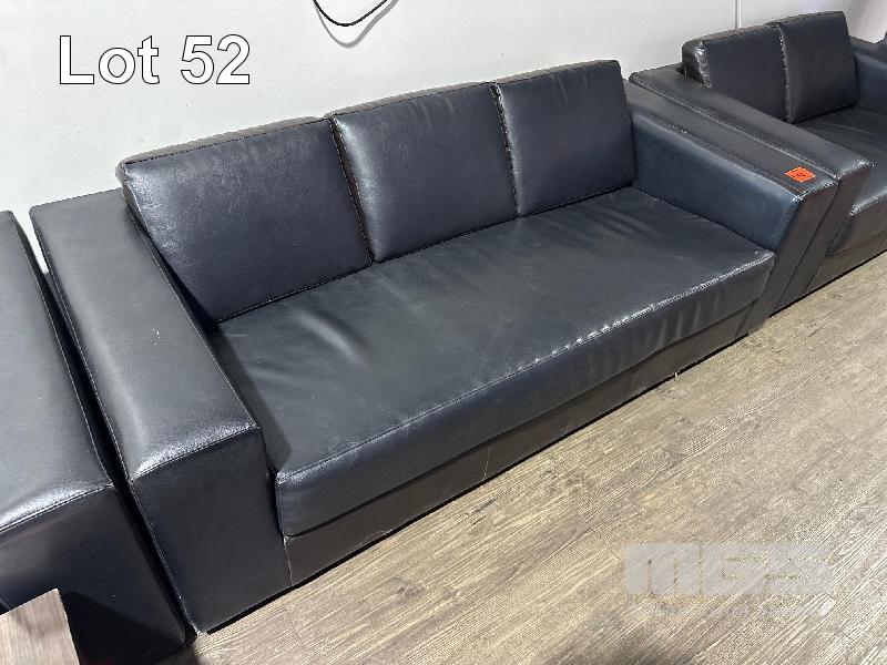 3 x 2 SEATER & 1 x 3 SEATER BLACK LEATHER LOUNGES, ALL WORN