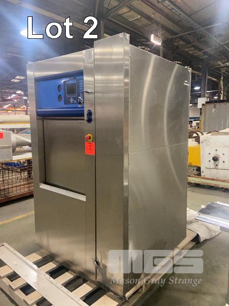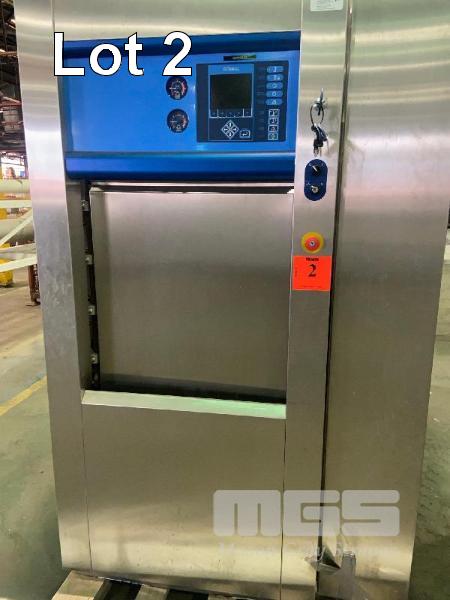 GETINGE ,PASS THRU STERILIZER . INCLUDES MANUALS , IN AND OUTFEED TROLLEYS WITH SLIDE IN TRAYS. & STAINLESS STEEL WORK BENCH . MANUALS , MODEL No. GEV 6610Emc. UNIT No. 5102969-101. DOM 2012 THE GREEN DISPENSARY STERILIZER PERFORMANCE QUALIFICATION. ELECTRCAL SAFTEY CHECK 2022.