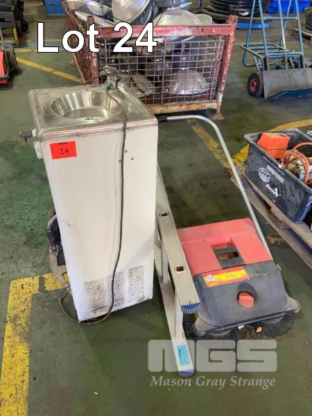 REFRIGERATED WATER COOLER, WATERWORKS, MANUAL FLOOR SWEEPER & SMALL ALUMINIUM LADDER