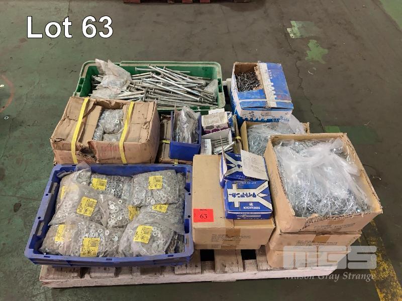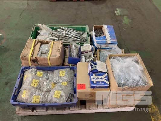 ASSORTED PACKAGED HARDWARE, FLAT WASHERS, NAILS, BOLTS, NEW CONTENTS 1 x PALLET